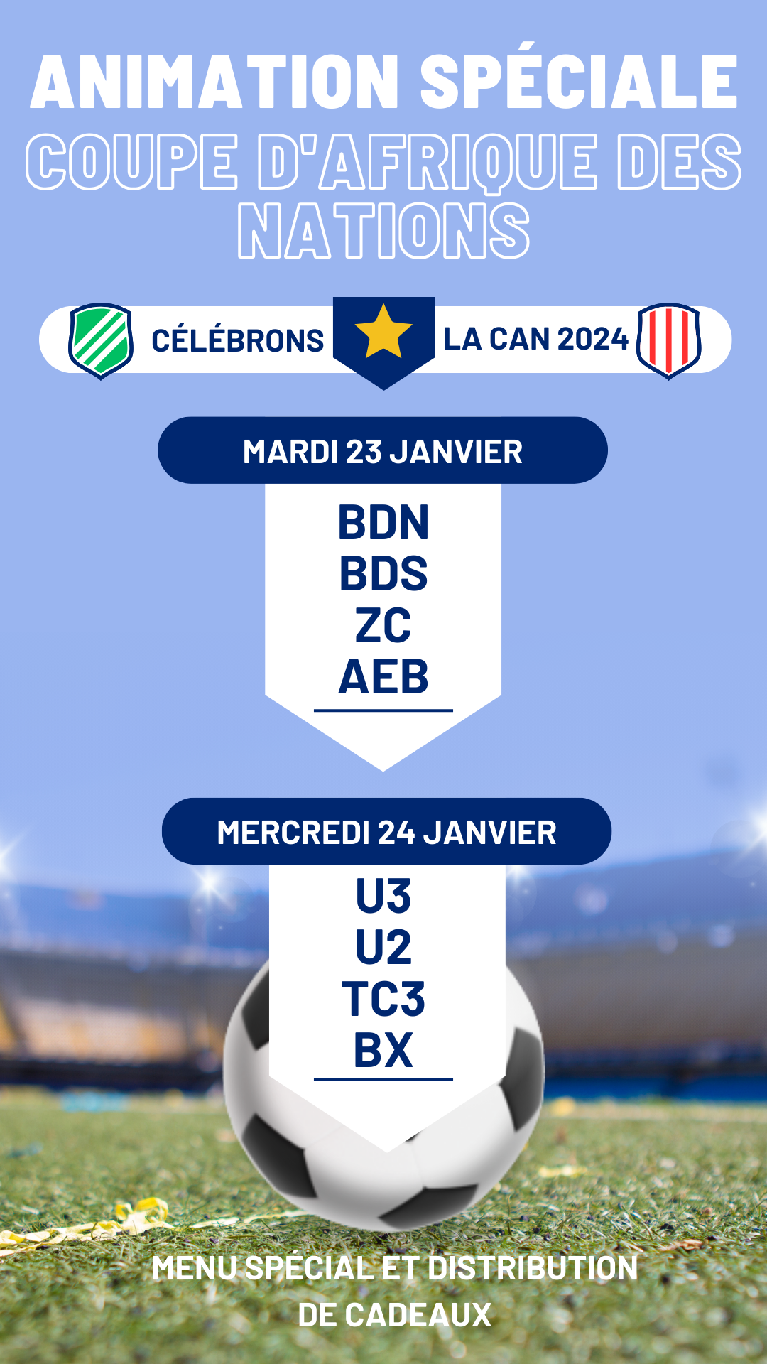 Le 23 et le 24 janvier, retrouvez dans vos restaurants l'animation spéciale CAN pour une expérience footballistique pendant votre repas.